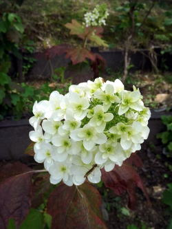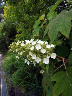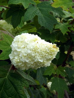 | カシワバアジサイ品種 スノー・クイーン Hydrangea quercifolia Snow Queen アジサイ科 撮影日:平成29年5月28日 撮影場所: アメリカ産植物見本園 |