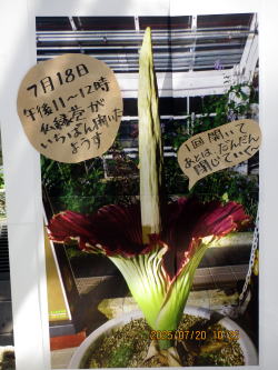 ポンテデリア パニクラタ Peltandra virginica ミズアオイ科 撮影日:平成27年7月2日 撮影場所:温室 |