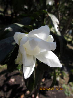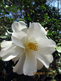 | 伊勢大白(いせたいはく) Camellia Ise-taihaku 鈴鹿山脈南麗の民家で発見された品種 ツバキ科 撮影日:平成22年3月17日 撮影場所:椿園 |