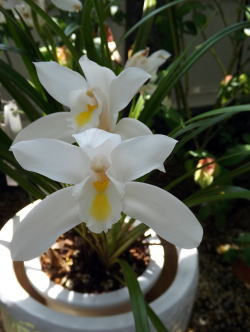 フイリバニラ Vanilla planifoliaVariegata さや状の実を付ける ラン科 撮影日:平成26年4月5日 撮影場所:温室 |