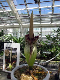 | ハナシュクシャ Hedychium coronarium J.Koenig 夕方に花が咲く ショウガ科 インド〜東南アジア 撮影日:令和5年7月7日 撮影場所:温室 |